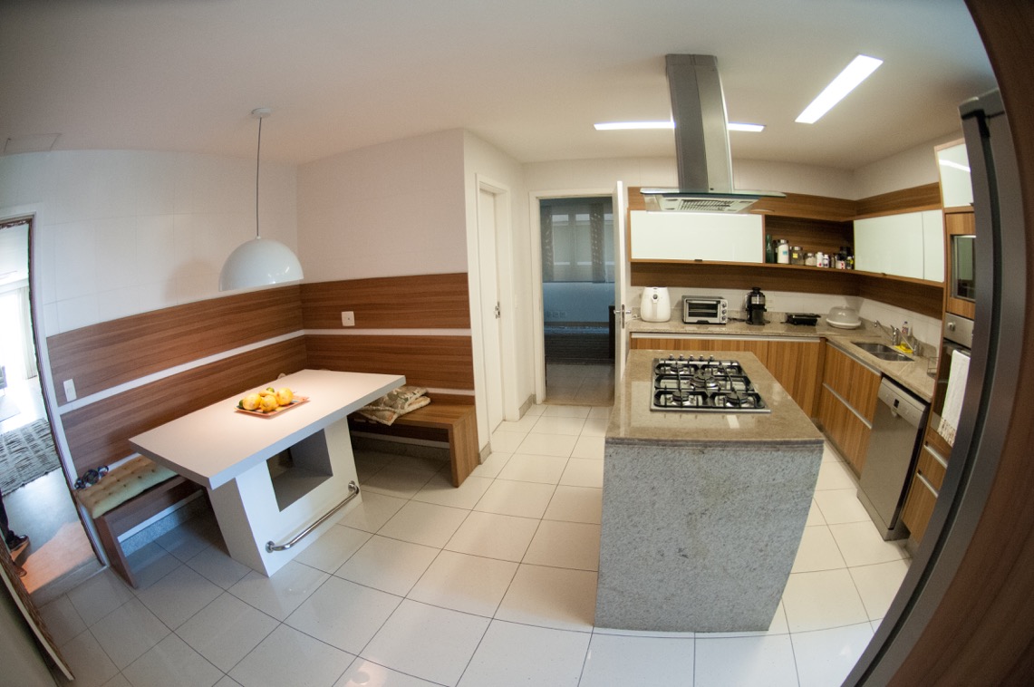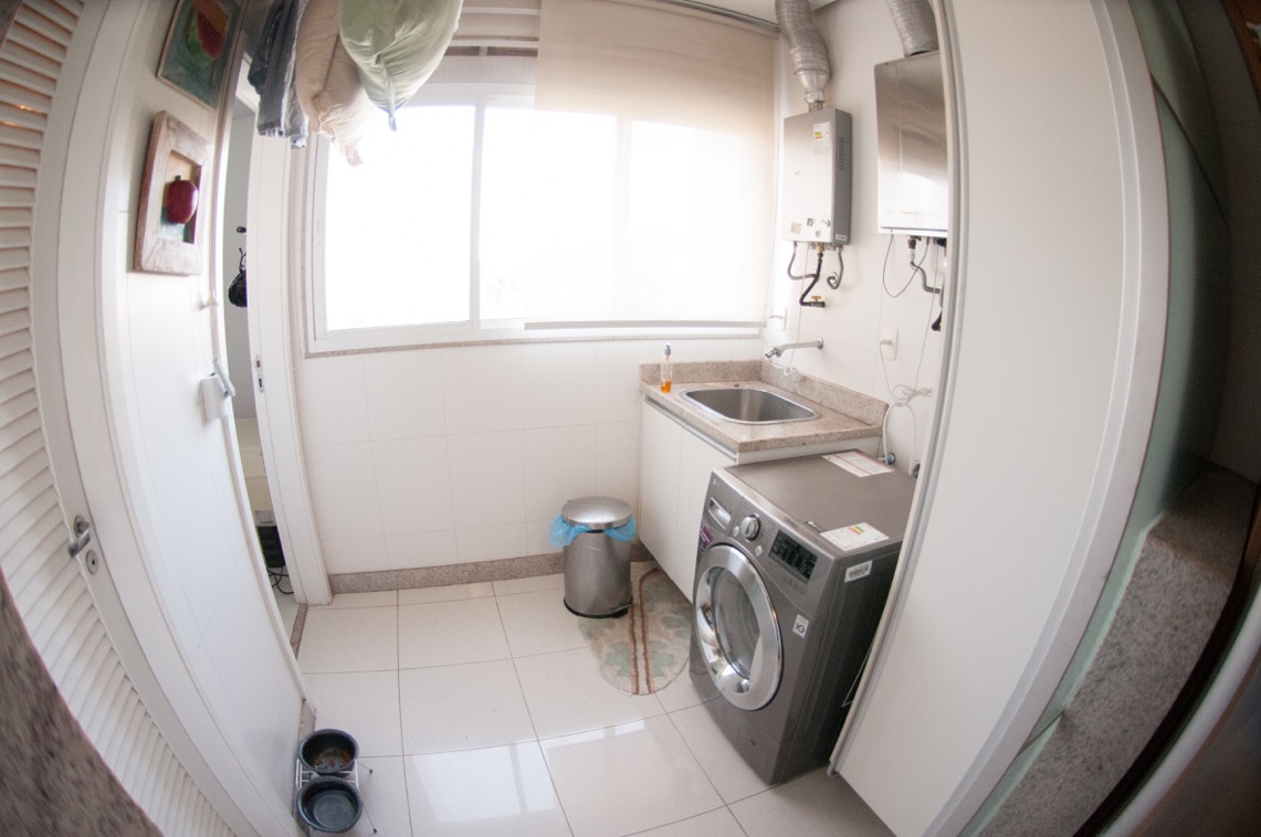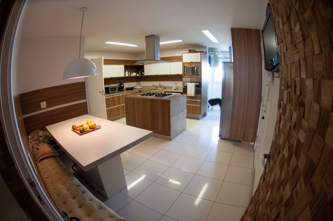 Bloco 6, 4 suítes, varandas em 3 quartos e na sala, ampla sala, sala de TV, cozinha completa, dependência de empregados, 3 vagas de garagem e quarto para bike.